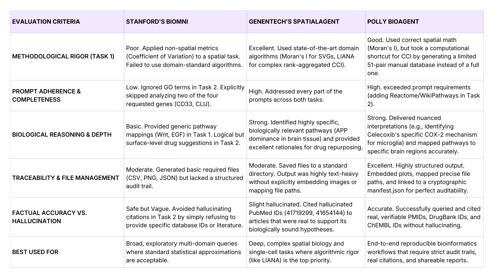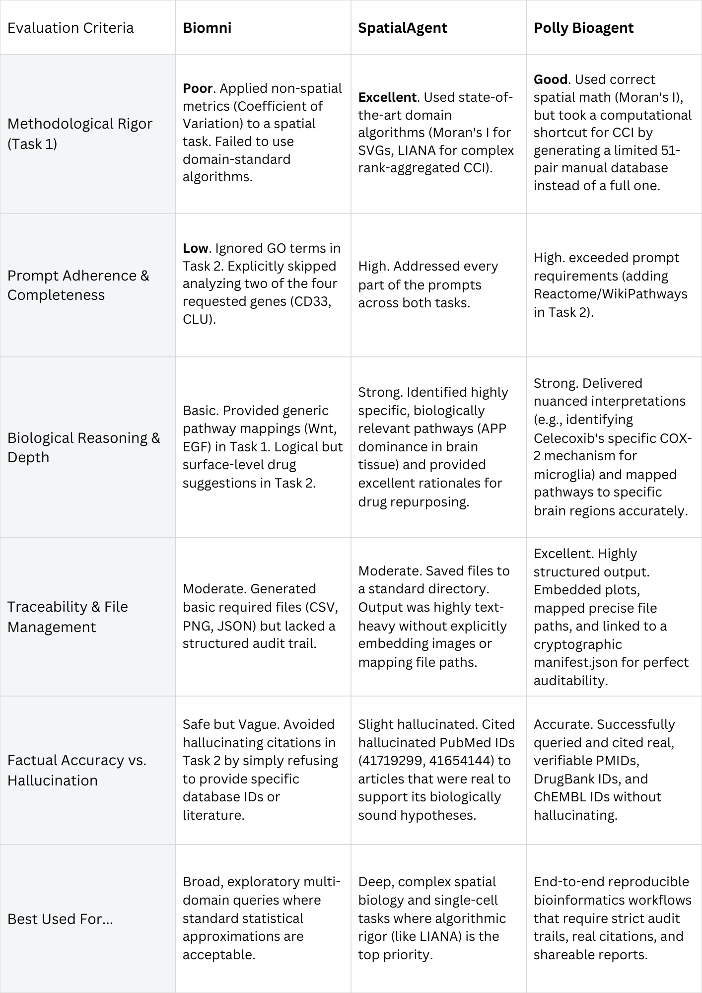 Whether you are looking for an autonomous scientist to architect a CRISPR screen or a reliable digital analyst to process a spatial transcriptomics pipeline, the rise of "BioAgents" is rapidly shifting the landscape of drug discovery. No longer just simple LLMs, these agents now integrate massive biological data lakes with specialized toolsets to perform complex reasoning. But as the field crowds with contenders, a critical question remains: which of these agents can actually do the math, and which ones are just "hallucinating" a PhD? In this deep dive, we benchmark three of the industry’s most talked-about AI Agents, Stanford’s broad-spectrum Biomni, Genentech’s precision-focused SpatialAgent, and the workflow-centric Polly BioAgent to see how they handle real-world spatial analysis and literature mining tasks.